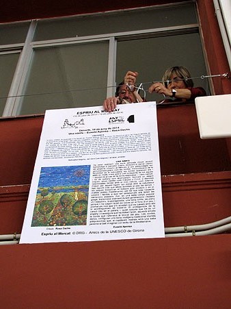 10 de juny 2014. Una nimfa. Emmarcat en els actes amb motiu del centenari de l'escriptor, l'associació Amics de la UNESCO de Girona amb la col·laboració de l'associació de comerciants del Mercat del Lleó, organitza mensualment una proposta l'objectiu de la qual és apropar l'escriptor al gran públic, a partir del llibre de Salvador Espriu "Les roques i el mar, el blau".