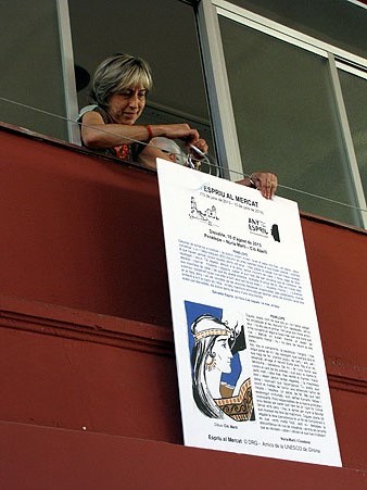 (Ampliar) - L'artista Ció Abellí autora de la il·lustració.A partir d'aquest text, Amics de la UNESCO de Girona ha convidat a 12 socis i col·laboradors escriptors i artistes, a fer la seva pròpia lectura de dotze capítols; al cap d'un any es disposarà de dotze capítols nous i dotze il·lustracions, que seran llegits i presentats, un cada mes coicidint en el dia 10, en l'activitat Espriu al Mercat que va del 10 de juliol 2013 al 10 de juliol 2014.
