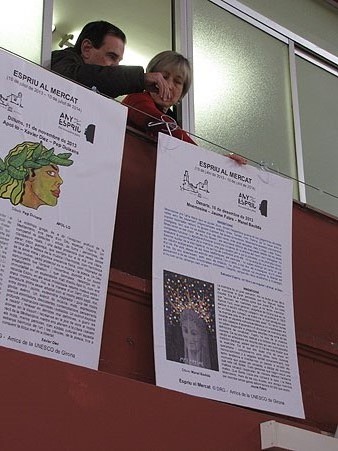 10 de desembre 2013. Mnemosine. Emmarcat en els actes amb motiu del centenari de l'escriptor, l'associació Amics de la UNESCO de Girona amb la col·laboració de l'associació de comerciants del Mercat del Lleó, organitza mensualment una proposta l'objectiu de la qual és apropar l'escriptor al gran públic, a partir del llibre de Salvador Espriu "Les roques i el mar, el blau".