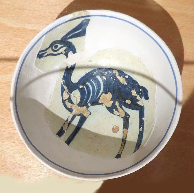 - Escudella de ceràmica blava. Segle XVII. Jaciment del molí de la Torre Balldovina, Santa Coloma de Gramenet. Museu Torre Balldovina.