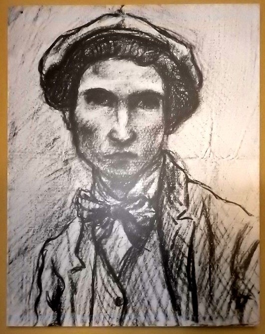 (Ampliar) - Fidel Aguilar. Autoretrat amb gorra. Ca. 1915. Carbó sobre paper. AHCOAC-G.