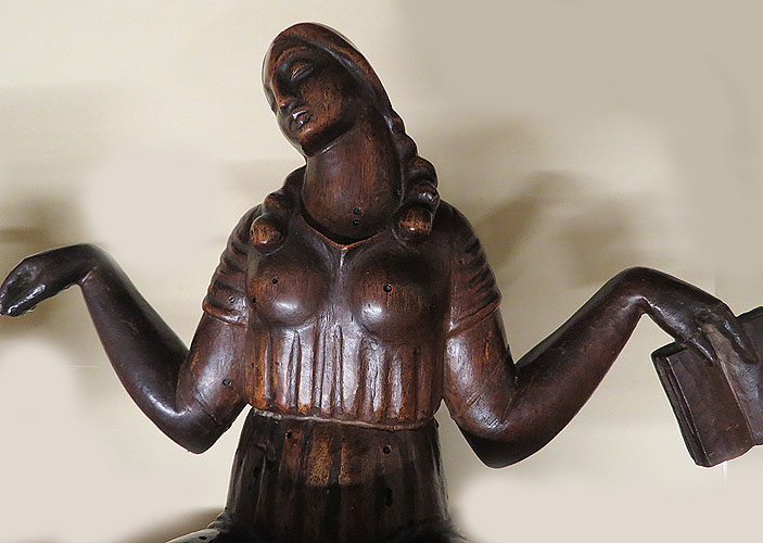 (Ampliar) - Fidel Aguilar. Aurea Pax. Ca 1916. Fusta tallada. Col·lecció Joan Montsalvatge, Caldes de Montbui.