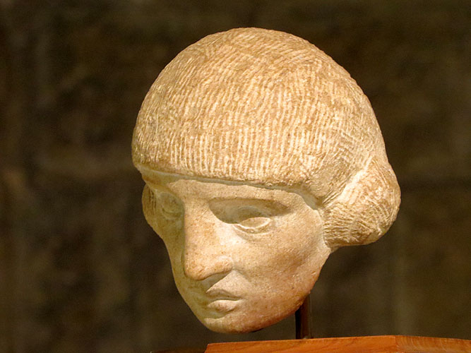(Ampliar) - Fidel Aguilar. Cap. 1916. Pedra de Girona tallada. Col·lecció Montserrat Masó Bru, Girona.