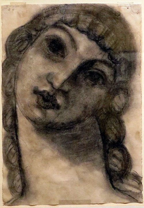 (Ampliar) - Fidel Aguilar. Cap de dona. Ca. 1916. Carbó sobre paper. Museu d'Art Girona.