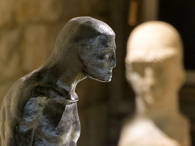 (Ampliar) - Peces de l'exposició. Per contextualitzar l’obra d’Aguilar, també s’exposen obres d’altres artistes de l’època i nombrosa documentació gràfica relacionada amb l’escultor. Així doncs, també s’exposen una cinquantena de peces d’artistes contemporanis, com ara Enric Casanovas, Josep Clarà, Xavier Nogués, Joaquim Claret, Josep Aragay, Celso Lagar, Frederic Marès, Julio Antonio, Joan Baptista Coromina, Pere Torné Esquius o Josep Armengol.