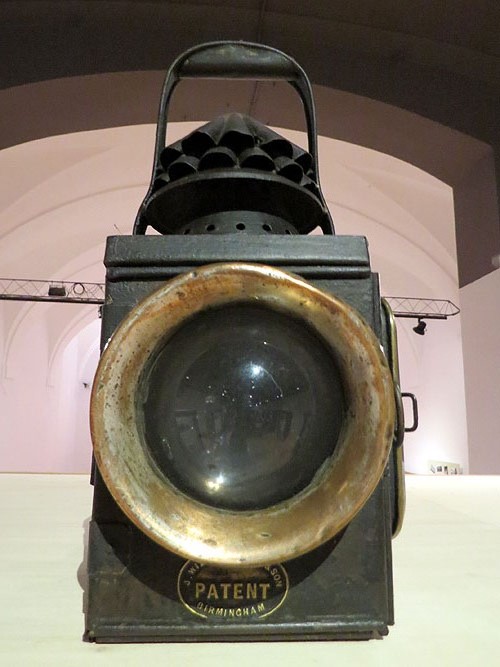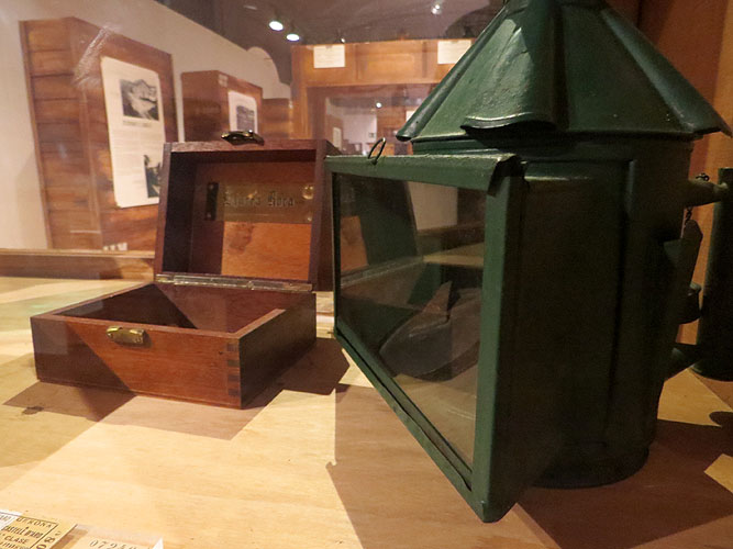(Ampliar) - Caixa regal d'homenatge a Laureà Roca com a treballador de la Cia. del Ferrocarril, fanal de mà de la Companyia del Ferrocarril de Sant Feliu de Guíxols a Girona. Col·lecció Jordi Roca