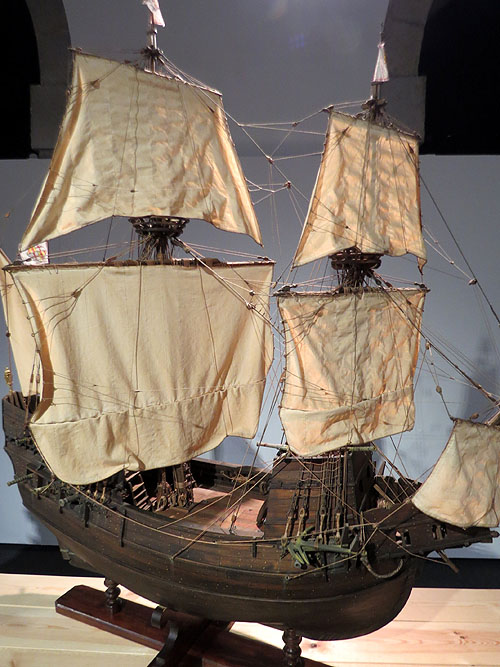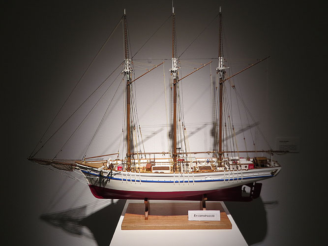 (Ampliar) - 'Nuestra Señora de Montserrate'. Galió, vaixell de vela utilitzat des de mitjan segle XVI. De grans dimensions i de borda alta, es movia per acció del vent. Els galions eren vaixells de grans prestacions, gran mida i capacitat de foc. Modelista: Enric Juhé.
