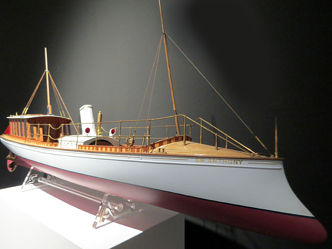 (Ampliar) - 'Sir Anthony'. Vaixell dissenyat i construït el 1912 per a llacs interiors suïssos. Es basa en un dibuix del catàleg de 1912 de l'empresa Escher Wyss, establerta a Z¨rich. Modelista: Antoni Barata.
