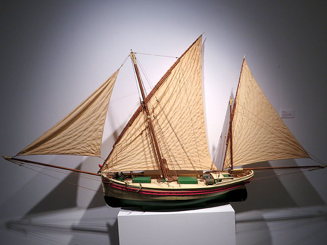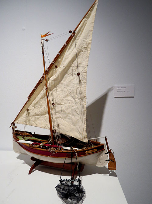 (Ampliar) - 'Francisca'. Maqueta construïda el 1954 per Jaume Puig Agut, un dels millors modelistes del segle XX, corresponent a la darrera barca de bou que va feinejar a la Costa Daurada. Museu Marítim de Barcelona.