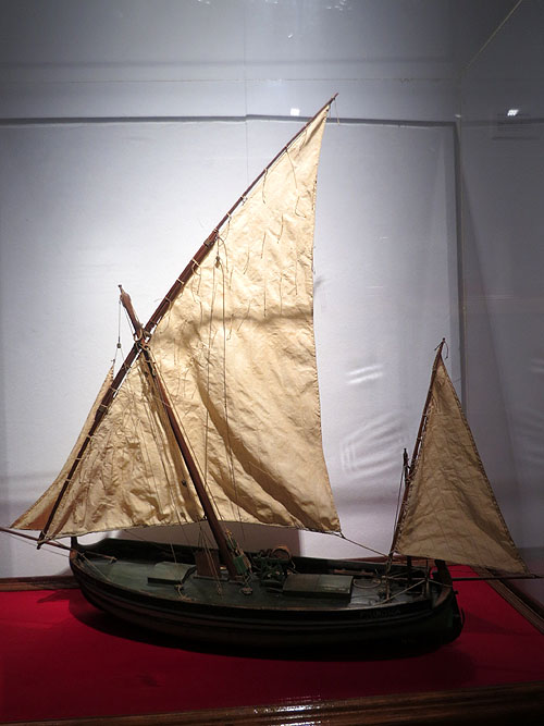 (Ampliar) - Barca de mitjana. És una embarcació de vela del Mediterrani aparellada amb dos pals, un botaló i tres veles. Embarcació de cabotatge dedicada al transport de mercaderies. Modelista: Enric Juhé.