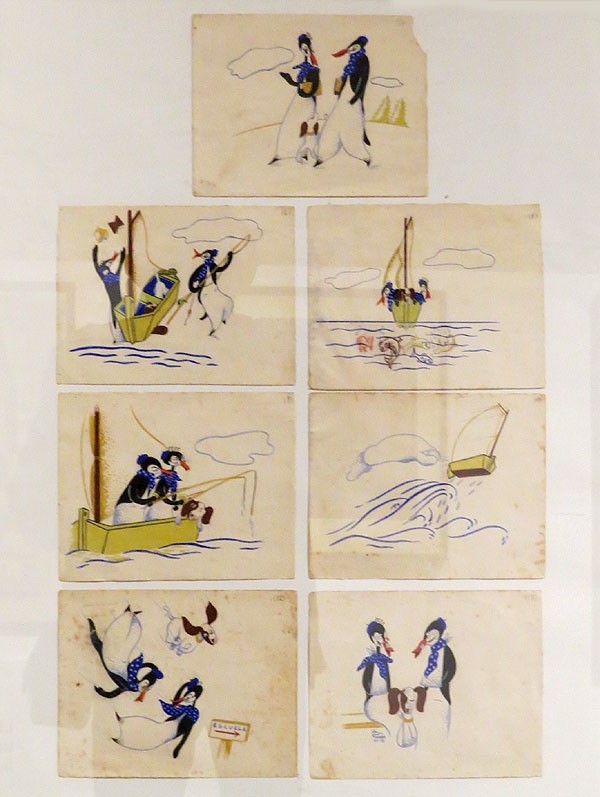 - Dibuixos animats: dos pingüins i un gos. 1938. 7 dibuixos de 15 x 19 cm. Ajuntament de Girona, Arxiu Municipal.