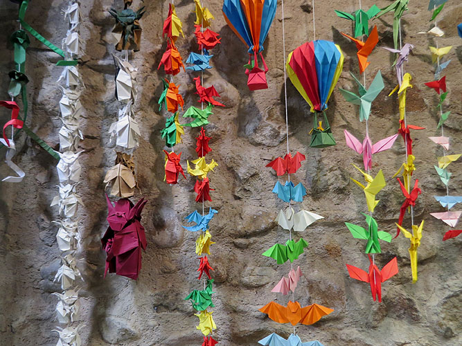 (Ampliar) - Senbazuru, conjunt de mil grues d'Origami unides per fils, fetes per Jordi Pericot. Les mil grues de Sadako Sasaki.