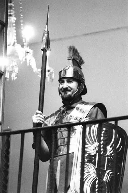 (Ampliar) - Joan Cortés vestit de Manaia al Castrum de Sant Lluc. 1984. Jordi S. Carrera. CRDI - Ajuntament de Girona.