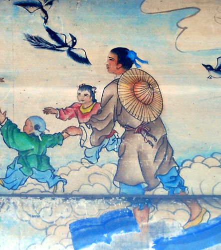 - Niulang, Zhinu i els seus dos fills. (Viquipèdia)