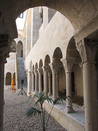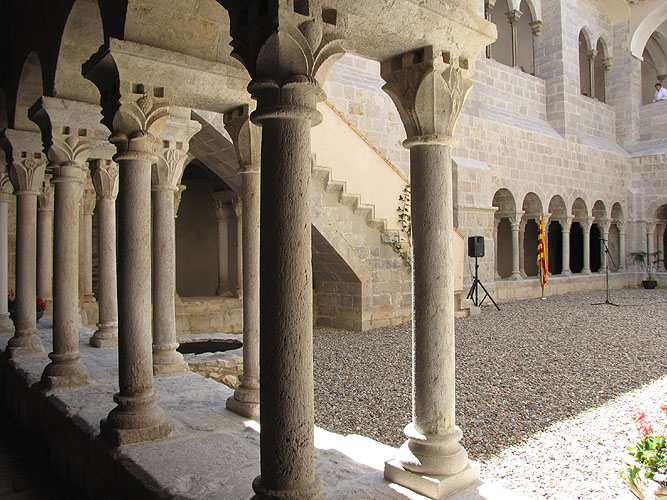 El claustre és de planta trapeziforme i consta de dues galeries. La inferior, d'estil romànic, és de principis del segle XIII, està coberta amb una volta de canó amb 42 parells de columnes articulats amb sis i dotze arcades de mig punt i capitells amb decoració floral i geomètrica.