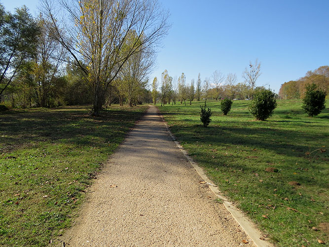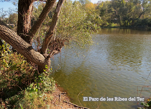 El parc de les Ribes del Ter va ser construït a meitat dels anys 90. Arran de la planificació urbanística del sector de Fontajau i la construcció del pavelló, es va ordenar l’espai situat al marge esquerre del Ter en aquest sector. A més de la construcció de la passera de vianants, es va elevar lleugerament el nivell d’aigua del riu gràcies a una petita resclosa situada just al peu de la passera, amb el que es va aconseguir augmentar la superfície d’aigües obertes i donar una làmina d’aigua de molta més amplada, en la qual hi han crescut canyissars, joncs i altra vegetació de ribera. El conjunt escultòric de metall "La família" de Xavier Corberó representa el moment de fer un berenar. La cistella a prop de la família i el fet de que l’escenari tingui lloc en un espai obert ajuda a entendre l’acció de la berenada entre les figures humanes fetes de metall representades de manera tan esquemàtica.