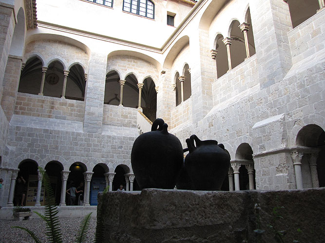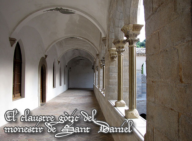 El claustre del monestir de Sant Daniel és un magnífic exemplar romànic, de finals del segle XII. Però en època gòtica, entre els anys 1427 i 1430 es va aixecar un segon pis, un sobre-claustre, amb dues galeries, que més endavant es va completar amb dues galeries més, però amb grans arcs de mig punt. Conjuntament amb aquest pis superior, es va construir l'escala d'accés, d'un gòtic típicament mediterrani: capitells tots iguals decorats amb una doble filera de fulles que recorden l'estil corinti i uns senzills motius florals en els àbacs.