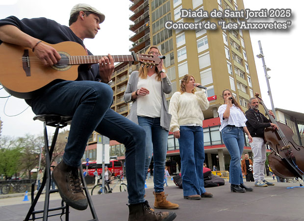 El dimecres 23 d'abril 2025, Diada de Sant Jordi, es varen tornar a instal·lar les parades de roses i llibres a la Rambla de la Llibertat i entorns. A la tarda, a la plaça Catalunya, va tenir lloc un concert de la formació femenina d'havaneres "Les Anxovetes". Grup nascut l’estiu del 2013 a Girona, està format per Tona Gafarot (veu greu), Montse Ferrermoner (veu aguda/mitja) i Marta Pérez (veu aguda/mitja). Les acompanyen el contrabaixista Xevi Pasqual i el guitarrista Salva Gallego.