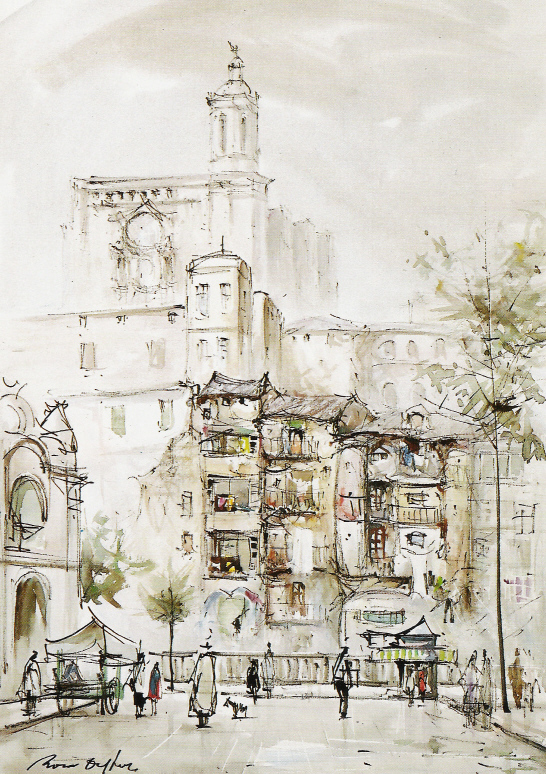 1. Els Roca: Girona en el cor i el pensament.Una vegada més, la Galeria d'Art "El Claustre" de Girona ens ofereix una mostra que va més enllà del fet d'exhibir unes peces d'art. A l'entorn d'aquests dies, que s'envolten d'un aire diferent, primaveral i amb olors de flors i l'estrena de llibres, juntament a les fidelitats de l'esperit, tenim la sort de gaudir de les realitzacions familiars dels Roca a Girona, en el decurs d'aquest segle. Jaume Roca i Delpech, i Santiago Roca i Costa, ens porten al Gironès la tradició familiar d'artistes que tenim a la Garrotxa: els Vayreda, els Berga, els Carbonell i que, encertadamente, el matrimoni Miquel Mascort - Nuri Yglésias acullen a la seva casa del carrer Nou. I ho fan amb l'amplitud i la generositat que defineixen les seves iniciatives al servei de l'art i la societat de Girona, més enllà, com dèiem, del fet comercial i legítim de la seva activitat de galeristes. L'exposició dedicada a aquests pare i fill artistes ens permet un recorregut pels diferents aspectes del nostre teixit social, en el seu bategar de sensibilitats i creativitats en àmbits ben diferents. Tots hi són presents. Cal començar per Jaume Roca Delpech, tan prematurament allunyat de nosaltres, als 58 anys, ja fa un llarg quart de segle. El record de la seva obra d'artista plàstic, no ens pot fer oblidar el no menys llarg camí musical que com a intèrpret i compositor encetà quasi d'infant amb la sardana "La vella rondinaire", que signà amb quinze anys. I és en aquesta vessant creativa que la Diputació de Girona ni participa en concedir una beca al jove artista que podrà estudiar i formar-se a l'Schola Cantorum de París, entre els anys 1927 i 1932. Aquesta sintonia -el terme és del tot exacte- entre la Corporació gironina i els artistes s'ha mantingut en el decurs del llarg segle i mig d'activitat de la Diputació. Permeti el lector que en faci memòria. De Roca i Delpech sempre ens ha quedat el dubte de si vam perdre un músic per guanyar un pintor. És un encert que en aquesta mostra del Claustre hi tinguem constància d'aquesta llarga etapa que s'esvaeix l'any 1948 amb aquella audició-homenatge de les seves sardanes a la barcelonina Rambla de Catalunya i que, significativament, ja coincideix amb una exposició de l'artista. Quasi una vintena de composicions sardanistes conegudes són el testimoni d'aquesta etapa. Algunes amb títols representatius: "Salt", en homenatge al seu bressol, "Iris", la cobla on va tocar uns anys, d'altres d'inspiració bucòlica, "La dansa del pastor", "Gavina", "Alba", "Els aucells"... El seu mestre, Francesc Civil i Castellví que, circumstàncies del destí, sobreviurà el deixeble, el descriu com "un pianista brillant, doblat d'un aquarel·lista excepcional, o viceversa, un exquisit pintor atent com pocs al llenguatge subtil de les divines harmonies". Possiblement, l'esperit de Roca i Delpech es va debatre llargament entre ambdues capacitats creatives, malgrat que per a molt sigui un artista plàstic i no pas un músic important, concertista eminent cridat al Palau de la Música Catalana, després d'aconseguir les màximes qualificacions de llicenciatura i el Premi extraordinari de l'Schola parisina esmentada. Finalment, "per raons de mercat cultural2, segons escriu Francesc Miralles, Roca i Delpech es decanta per la plàstica. El trencament generacional provocat per la Guerra Civil hi va tenir quelcom a veure. Des del front envia a casa aquarel·les que realitza en estones d'esbarjo. Aquesta tècnica exigent, reservada als escollits, l'ha captivat. N'esdevindrà un mestre reconegut arreu del món. Les seves realitzacions ens sorprenen encara avui en establiments públics d'Escandinàvia, Alemanya, Suïssa o els països del Benelux. També creuà l'Atlàntic i, naturalment, el captivament que París i França van fer del seu esperit d'adolescent el porten una i altra volta a les ribes del Sena, als carrerons del Barri Llatí o de l'Illa de Sant Lluís. I per damunt de tot: les terres i el mar de Girona, a les quals dedica el gruix de la seva obra amb una perfecció tècnica a la qual els afeccionats intentem acostar-nos. L'aparent facilitat amb què dibuixa amb nogalina a la ploma, sobre paper humit de la seva primera etapa per evolucionar vers la tinta xinesa, que substituirà la nogalina, només pot sortir de la mà del mestre, que tampoc no oblida l'aquarel·la pura i en dos moments de la seva vida, en les primeres i darreres exposicions, realitza uns olis magnífics, avui cercats pels col·leccionistes. Voldria que aquest record inclogués també unes notes personals. Per raons de veïnatge, vaig tenir la sort de seguir de prop, físicament, al seu costat, el pas de Jaume Roca i Delpech per la ciutat, especialment pel Barri Vell, i descobrir aquell indret perfecte des d'on els nostres edificis i monuments més definitius esdevenien millors encara. Aquesta petja va ser per a mi un mestratge que molts haurien volgut tenir i, possiblement, amb millor aprofitament que el meu. Tot plegat es revifa en els meus sentiments en tractar de fer alguna cosa amb l'aquarel·la. L'amistat amb què em va honorar és una altra vessant d'aquest artista, que per a mi és una obra preuada que he emmarcat en el meu esperit. Admiraré sempre la seva capacitat creativa, el seu dinamisme i intel·ligència per copsar l'essencial de cada lloc, de cada indret per llunyà i diferent que sigui del seu, i nostre, entorn natural. Els resultats van ser esplèndids, malgrat que Jaume Roca i Delpech ens deixà sobtadament, inesperadament. En podiem esperar moltes coses més, encara. Sortosament ens ha quedat el llegat de la seva obra, que hem vist en algunes exposicions-homenatge, com la del 1973 a les sales de la Rambla o la que en aquests mateixos dies de l'entorn de Sant Jordi de 1987 va tenir lloc al Palau de Caramany, en una lloable iniciativa familiar, i esperem que la gran donació que el seu fill va fer al Museu d'Història de la Ciutat pugui s