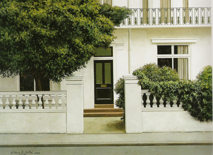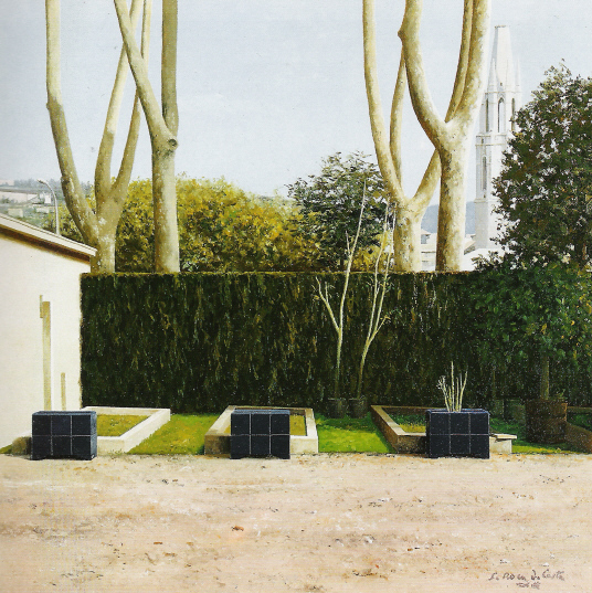 2. I l'obra continua amb Santiago Roca i Costa.Fer memòria dels pares és sempre un intent de retornar, encara que sigui simbòlicament, el que hem rebut de la seva total generositat. Santiago Roca i Costa és el dipositari d'aquest bagatge patern del qual hem tractat de donar unes pinzellades. A més, ho ha fet des de la seva pròpia obra. Ser artista i fill d'un artista com Roca Delpech no ha de ser gens fàcil. I encara més complicat si, legítimament, es vol afirmar la nova personalitat i evitar la fàcil comparança que els profans tendim a fer. Per tant, calia cercr un estil propi, definidor del que en Santiago volia dir-nos. I el va trobar. Ha aconseguit allò prou difícil: que la seva obra la puguem identificar immediatament. I, a més, a nivell personal, ha practicat aquesta fidelitat, fins diriem que devoció, envers el seu pare, de qui ha organitzat exposicions, n'ha escrit i ha cedit a Girona una part considerable de l'obra que, com deia, esperem veure dignament presentada. Si d'una banda a Santiago Roca i Costa l'ombra del pare que s'esvaí als vint-i-un anys de convivència amb el fill, podia haver estat un llistó molt alt per superar, ha esdevingut una referència obligada i volguda per crear aquesta obra personal i perfectament definida. L'estudi de l'artista, situat en la que és de fet l'única casa del carrer Roca i Delpech, respira un aire de cordial benvinguda que ja comença en el jardí, presidit per uns pins gegantins, i a la seva ombra, la primera sorpresa: una perfecta cabina telefònica britànica amb aquell llampant color vermell que la boira de les illes recomana per garantir la visibilitat del servei. I aquest to anglo-saxó i molt concretament londinenc es manté a l'entorn immediat on es crea l'obra d'en Santiago. Una obra a mig camí d'un hiperrealisme de perfecció exquisida i d'un intimisme personal que es concreta en un aire de misteri que ens permet endevinar una presència humana no definida. Només recordem una excepció. En una obra apareixia amb total discreció, l'artista, en un angle de la tela i del carrer. Un sentit que també ha definit la personalitat humana i cordial de Santiago Roca i Costa. Avui aquesta obra que, aparentment, no té res a veure amb la de Roca i Delpech, és una positiva realitat del nostre art que en aquesta mostra del Claustre podem veure i podem gaudir. Ens demanem si Santiago Roca i Costa hagués estat artista si abans no hagués existit Jaume Roca i Delpech. Sense aquests vint-i-un anys de convivència i mestratge. L'experiència diu que l'artista neix, que viu en els gens i en les essències que identifiquen la personalitat individual. Però també és cert que en un entorn determinat, una referència permanent ajuda, a voltes decisivament, les vocacions que s'enceten. En tot cas, aquesta exposició conjunta és una enriquidora experiència en la oferta artística de Girona. Aquest esclat primaveral concretat en uns dies un xic màgics, en què tot convida a gaudir de la nova llum que vol fer oblidar fredors i foscors d'hivern, es concreta entre nosaltres en "El Claustre", que no sols ens mostra un art de qualitat total, sinó que ens ajuda a fer aquesta sempre difícil memòria recent dels nostres artistes, que és també una forma perfecta de fer país. Un país que concretem entre uns perfils de campanars i el lliscar suau d'uns rius modestos però nostres, que si els Roca han pintat amb mestratge, el poeta, en dedicar uns versos a l'artista primer, va encertar en explicar millor que la prosa el sentiment que compartim: L'enyor com una abraçada