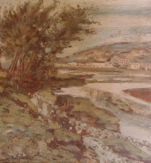L'Onyar i Pedret al fonsOli sobre telaOil on canvas47,2 x 44 cm1940-41Col·lecció particular
