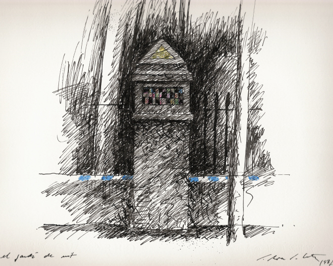 El jardí de nit.Tinta i llapisos de color sobre paper198725 x 35,5 cmCol·lecció de l'artista