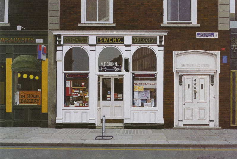 Lincoln Place. DublinOli sobre telaOil on canvas50 x 73 cm1996Col·lecció particularWhere is this? Ah yes, the last time. Sweny's in Lincoln Place. Chemists rarely move.