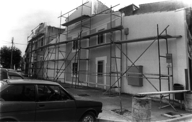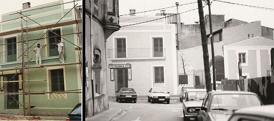 (Ampliar) - Procés de realització del mural a la plaça de la Creu de Caldes de Malavella. 1987. Xavier Ruiz. CRDI - Ajuntament de Girona. |