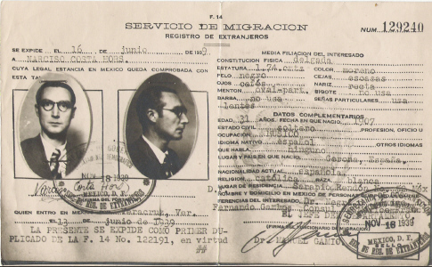 Com consta en el document, Narcís Costa va entrar a Mèxic el 13 de juny de 1939, per Veracruz, i va fixar la seva residència a Mèxic. Como consta en el documento, Narcís Costa entró en México el 13 de junio de 1939, por Veracruz, y fijó su residencia en Méjico.