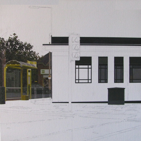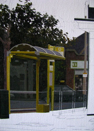 "Behind the shelter in the middle of the roundabout. Penny Lane, Liverpool"41 x 41 cms 2009. Ampliar |