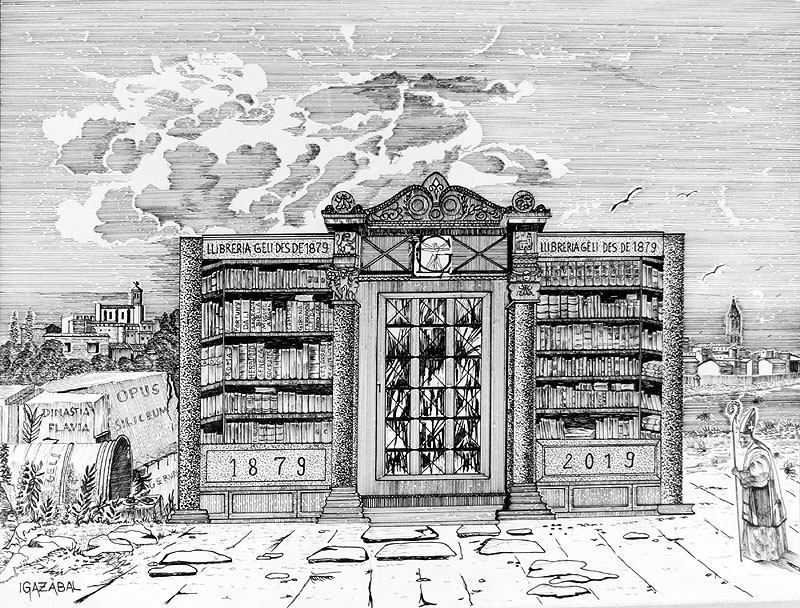 (Ampliar) - Dibuix d'Igazábal commemortiu dels 140 anys de la Llibreria Geli.