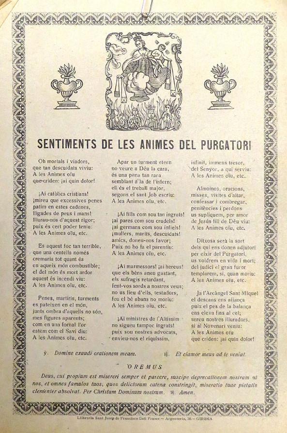 (Ampliar) - Sentiments de les ànimes del Purgatori. Ca. 1935. Peu d'impremta: Llibreria Sant Josep de Francisco Geli Fraser - Argenteria 20, Girona.