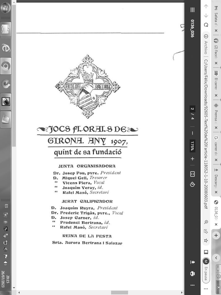 (Ampliar) - Jocs florals de Girona de 1907, presidits per Joaquim Ruyra. Publicat per Narcís-Jordi Aragó, op. cit.