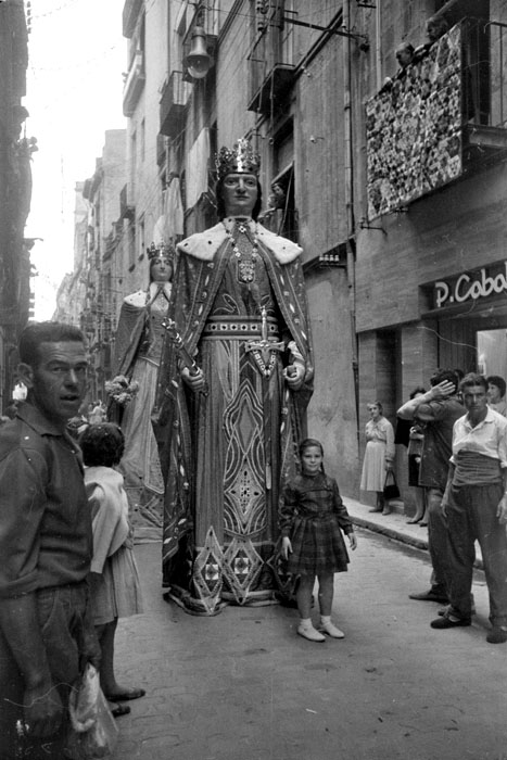 (Ampliar) - Processó de Corpus. Cercavila de gegants i capgrossos al carrer Ciutadans. 1963. Martí Massafont Costals. CRDI - Ajuntament de Girona.