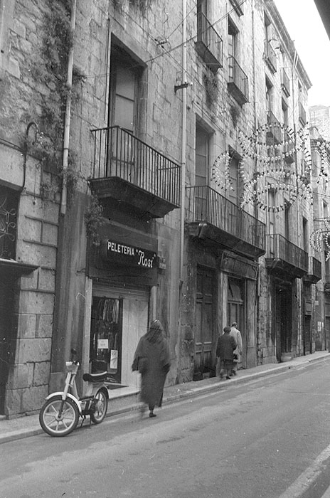 (Ampliar) - El carrer Ciutadans. En primer terme l'establiment 'Peleteria Rosi'. 1989. Lluís Crust Ballart. CRDI - Ajuntament de Girona.
