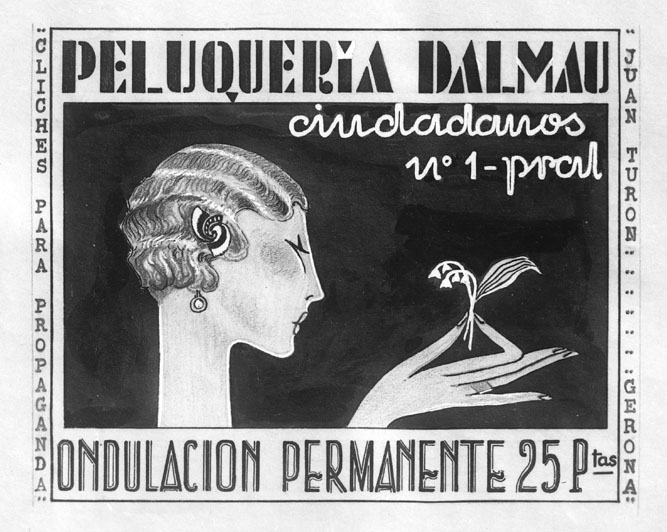 Cartell publicitari de la 'Peluquería Dalmau', al carrer Ciutadans n6uacute;mero 1. 1931. Autor desconegut. CRDI - Ajuntament de Girona - (Ampliar)