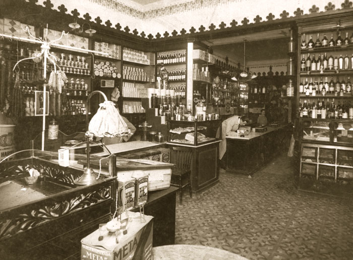 (Ampliar) - Aparador modernista del Colmado Gelabert, al carrer Ciutadans. 1900. Fotografia Unal. CRDI - Ajuntament de Girona.