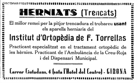Anunci de l'ortopèdia Torrellas publicat al diari "L'Autonomista" el 27/10/1934.