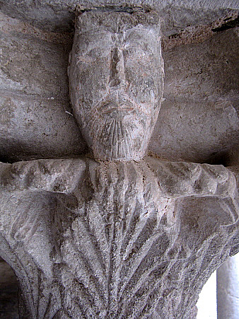 Els porxos es recolzen en arcs de mig punt acabats en parelles de columnes, que tenen els capitells esculpits, austers, gairebé tots decorats amb motius vegetals i geomètrics, llevat d'uns pocs que presenten algun element antropomòrfic, caps i busts d'home, tots amb una figuració molt arcaica.