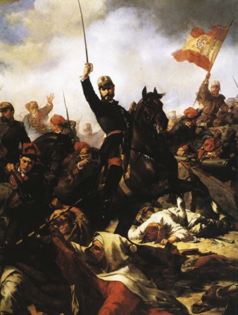 El general Prim a la guerra d'Àfrica. Oli de Francesc Sanz i Cabot, 1865. (Wikipèdia)