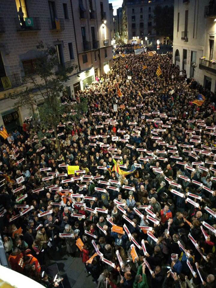El dimecres 8 de novembre 2017, durant la jornada de vaga general convocada en protesta per l’empresonament de la meitat dels membres del govern escollits a les urnes i cessats per un decret del govern espanyol, i dels presidents de les entitats sobiranistes, Jordi Sànchez i Jordi Cuixart, varen tenir lloc diverses concentracions, manifestacions i accions.