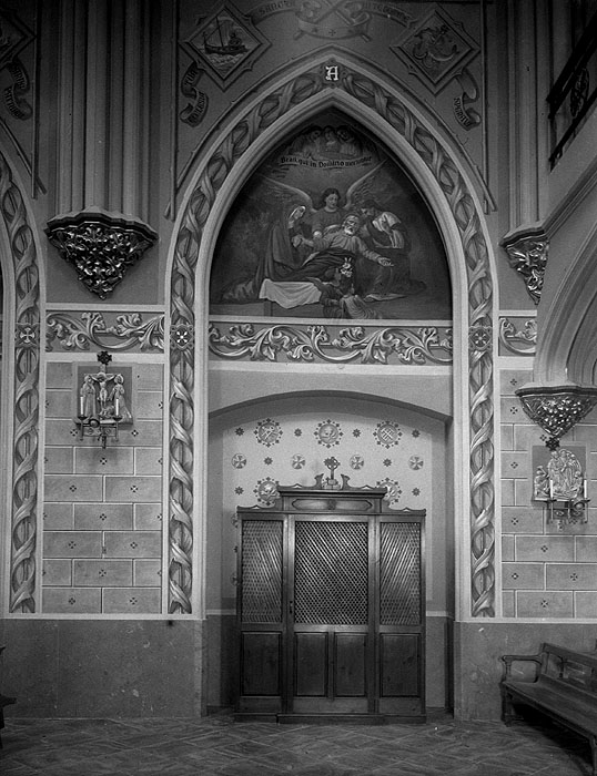 (Ampliar) - Interior de la capella del convent de les Religioses de Sant Josep, les Vetlladores, al carrer Portal Nou. Detall d'un mur lateral. 1930. Fotografia Unal. CRDI - Ajuntament de Girona.