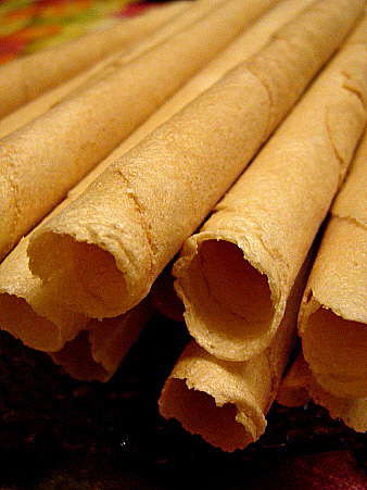 El dinar finalitzava amb els torrons (3), les neules (4), els esclopets (5), i moltes vegades el meló, que la nit abans havia cagatel Tió. Acompanyava l'àpat un assotiment de vins (6).