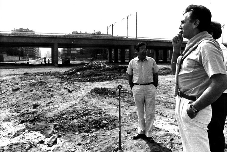 (Ampliar) - "L'escultor Andreu Alfaro durant la preparació de la instal·lació de la seva escultura a la plaça d'Europa de Girona. Juny 1983. Dani Duch Dausà. CRDI - Ajuntament de Girona.[Més imatges]