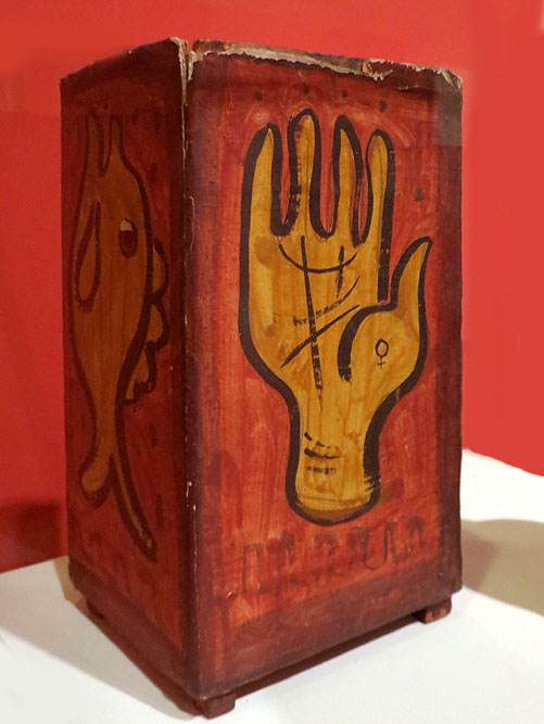 (Ampliar) - Fruits. Josep M. Subirachs. 1949. Terracota. Amb estoig de fusta per contenir l'escultura, confeccionat i decorat pel mateix artista. Col·lecció de la família Creus Boix.