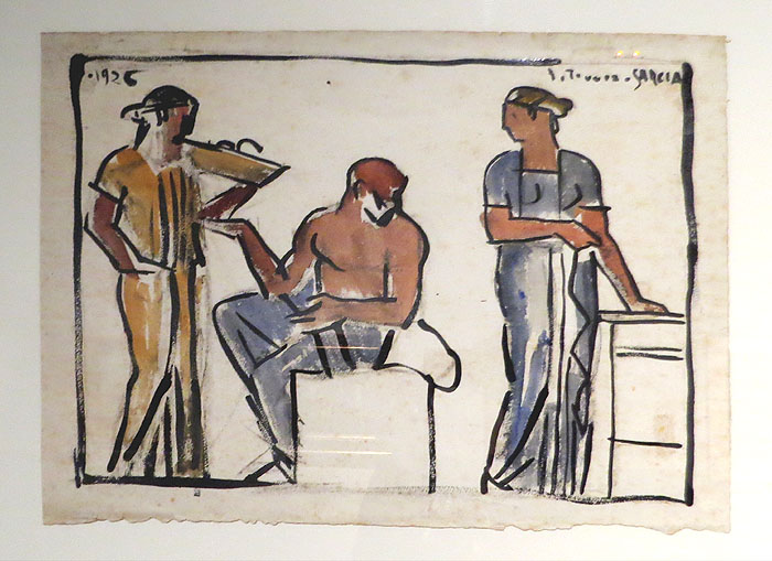 (Ampliar) - Joaquín Torres García. 'Fris grec', 1926. Tinta xina i aiguada sobre paper. 1.3.SALVADOR DALÍ A LA RESIDENCIA DE ESTUDIANTES (1922-1926). La trajectòria del jove Salvador Dalí passa per un episodi clau en la seva formació, que és la seva estada a Madrid durant la primera meitat dels anys 20 a la Residencia de Estudiantes, centre cultural de referència on convergiran moltes de les figures més inquietes de la intel·lectualitat espanyola de l’època. Allà, l'artista empordanès tindrà algunes trobades fonamentals per al desenvolupament de la seva carrera posterior: Rafael Barradas, Maruja Mallo, Luis Buñuel i Federico García Lorca.