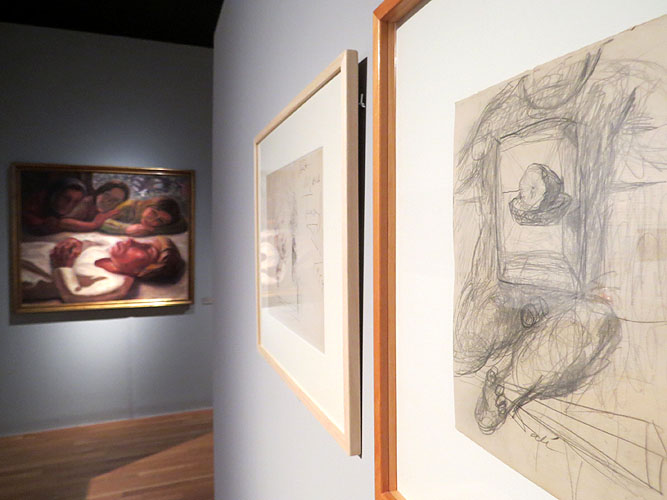 (Ampliar) - Una de les sales de l'exposició. 2.1.‘TIEMPO DE SILENCIO’: COBALTO 49 A LA POSTGUERRA (1947-1953). La Guerra Civil interromp el procés de renovació artística iniciat el primer terç del segle XX. No obstant això, i malgrat les dificultats del context, a final dels anys 40 comencen a sorgir diverses iniciatives que intenten reprendre aquesta activitat de preguerra. Entre les pioneres, cal destacar l'activitat de l'editorial Cobalto (1947), després esdevinguda Asociación Cobalto 49 (1949) i, més tard, substituïda per Club 49 (1950), que es convertirà en una plataforma important de promoció de l'art nou, aglutinant al seu voltant les forces vives de l'avantguarda del país, entre ells molts intel·lectuals i artistes vinculats a l’antiga ADLAN.