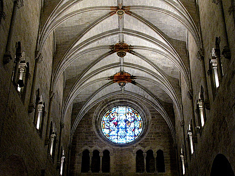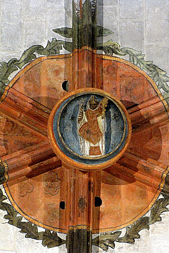 En la primera de les dues fases en les que treballaren els tècnics van sortir a la llum les ornamentacions més properes a la façana principal del temple, amb pintures a quatre claus de volta, en dues d'elles, corresponents al segle XV, les pintures també recobrien part del sostre amb motius com dracs o ornamentacions florals. Es tracta de les representacions més modernes, ja que aquesta part de l’església es va acabar de construir a finals del segle XV. Són pintures de colors vius i representen motius florals, sants, caçadors i, sobretot, dracs, que en aquella època eren una al·legoria del mal. Des del presbiteri en endavant, els relleus de les claus representen, respectivament, un pantocràtor en majestat, un escut de Catalunya fet amb tres barres, Sant Feliu amb una palma del martiri i l'evangeli, l'escut de Girona, una mare de Déu amb el Messies a la falda i el martiri de Sant Feliu. Tots els relleus es van cobrir durant el segle XIV amb pintura feta a partir de resines de coníferes mesclades amb pigments naturals i oli de llinosa. D'aquestes darreres sis claus de volta, les més ben conservades són les dues que es troben més a prop de l'altar. Tant el pantocràtor, decorat amb tons daurats, com l'escut de Catalunya tenien la pintura gairebé intacta. Per contra, però, les humitats que hi havia a les dues que representen Sant Feliu i l'escut de Girona va comportar que les policromies es trobessin en més mal estat. D'aquestes pintures no hi ha cap document que en parli, encara que sí que es conserven unes actes capitulars del 1792, en què s’aprova l’emblanquinat de la volta, per adequar-se als criteris estètics del barroc, coincidint amb la inauguració de la capella de Sant Narcís. |