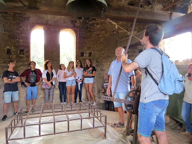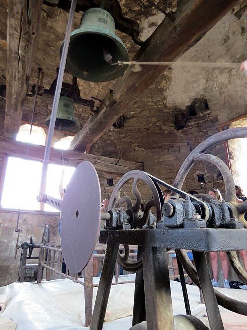 (Ampliar) - Interior del campanar del monestir durant el repic de Festa Major.