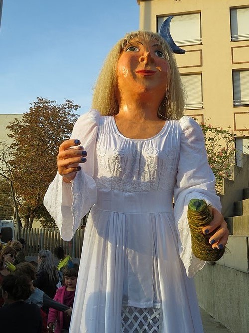 (Ampliar) - La geganta na Gènia, la Nimfa de la Monar, de Santa Eugènia de Ter, durant la cercavila del Pregó de Fires de Sant Narcís 2015.